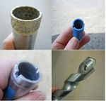金剛石鉆頭可以用密度大材質軟的研磨材料打磨,使其鋒利。完全磨損后,可從螺紋接口處去除并更換新的鉆頭。